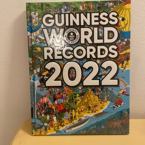 Sæt bestående af Guinness World Records bøger fra årene 2005, 2015, 2016, 2017, 2018, 2019 og 2020. Bøgerne indeholder forskellige verdensrekorder og fakta. Hver bog har farverige omslag med forskellige designs og årstal på forsiden.