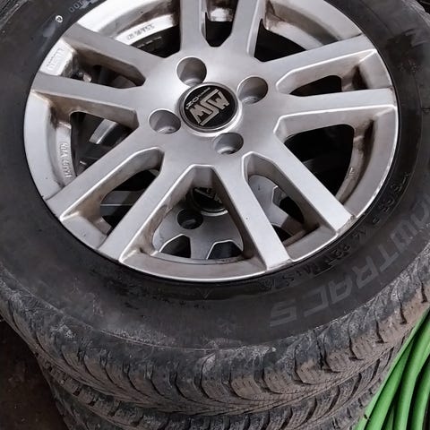 Alufælge 4x100 med vinterdæk som har lagt et stykke tid så skal nok renses ordentligt med fælgerens har sat på opel corsa