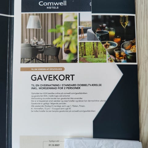 Jeg sælger et ophold for 2 personer på udvalgte comwell hoteller for 2 personer.