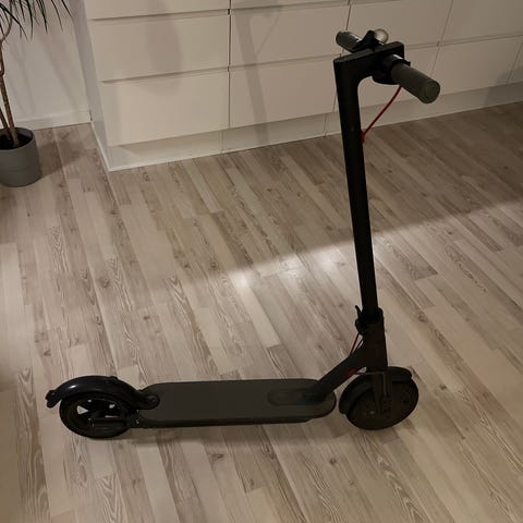 Xiaomi Mi Electric Scooter el-løbehjul i sort farve. Designet til personlig transport med elektrisk motor. Velegnet til pendling og kortere ture i byområder. Den virker som det skal med oplader.