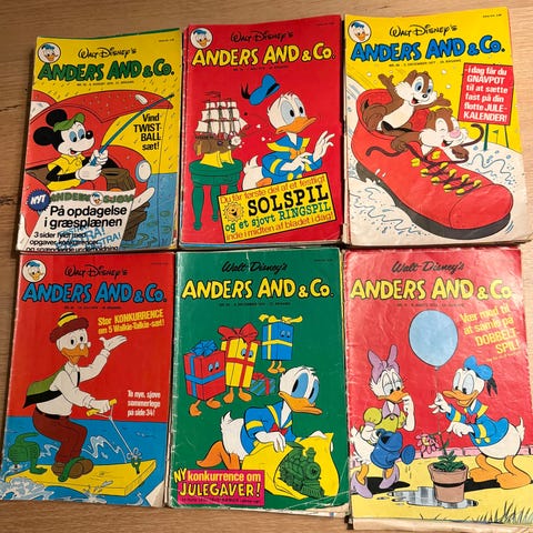 Anders And & Co. 1960 nr. 5-6-7-8, blade og indlæg. De fire blade er i rimelig stand, ingen tilskrivninger, ingen rygsplit og ingen rust på hæfteklammerne.