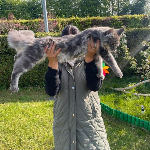 Mor er polycoon stor ligner mest en sort panter, far er skovkat meget stor med lang mørkebrun pels