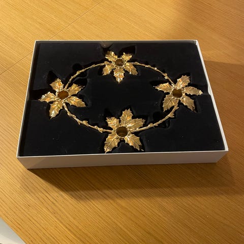 Rosendahl, Copenhagen, Karen Blixens Jul, ornament, dansende nisser, forgyldt, som ny, længde 12 cm, højde 8 cm, udgået design , med original æske