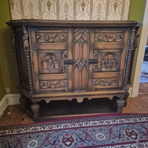 Rummeligt og udsøgt detaljerer gammelt gotisk møbel.