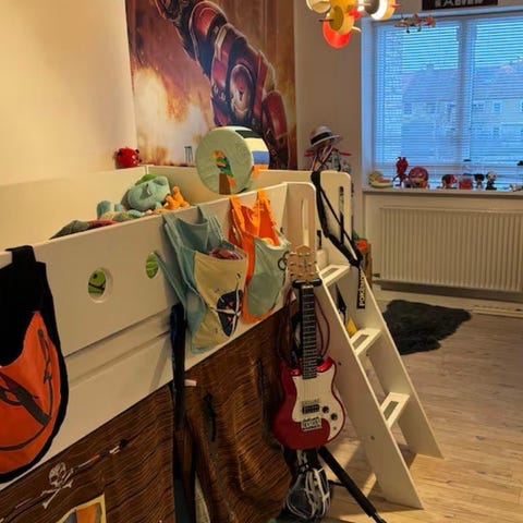 Stige og ben og sengehest til halvhøj seng
