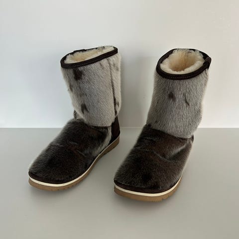 Varme vinterstøvler af sælskind fra Ethnoboot by Helene Stensby. Kun brugt få gange. Stor i størrelsen. Ny pris 2.399 kr.