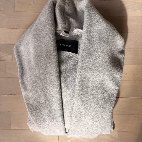 Blød og skøn morgenkåbe fra Karmameju i grå farve, størrelse 140. Passer til et barn på 8-10 år.