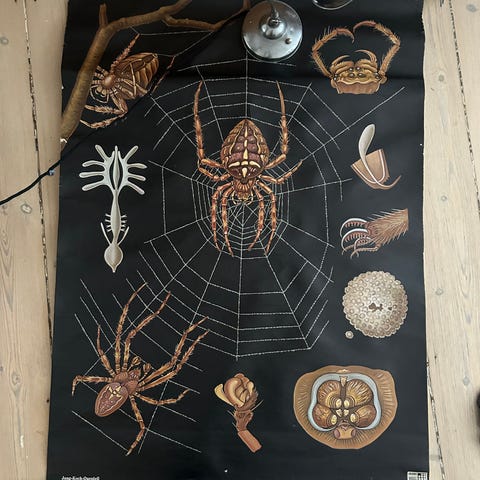 Vintage skoleplakat med illustrationer af forskellige rovfugle. Plakaten er indrammet og viser detaljerede tegninger af fuglene i naturlige omgivelser. Velegnet til undervisning eller som dekorativt element.