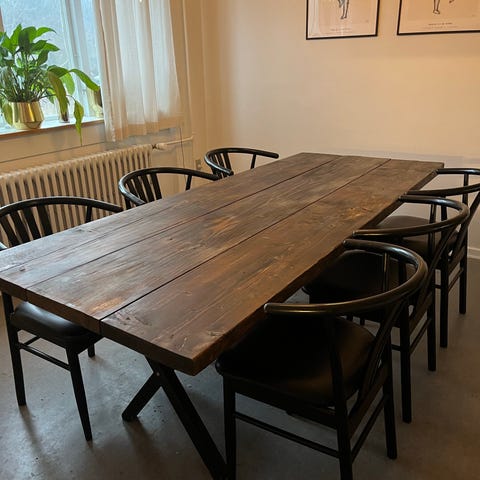 Fint plankebord. Kunne godt trænge til en slibning og lidt olie, men står rigtigt fint.