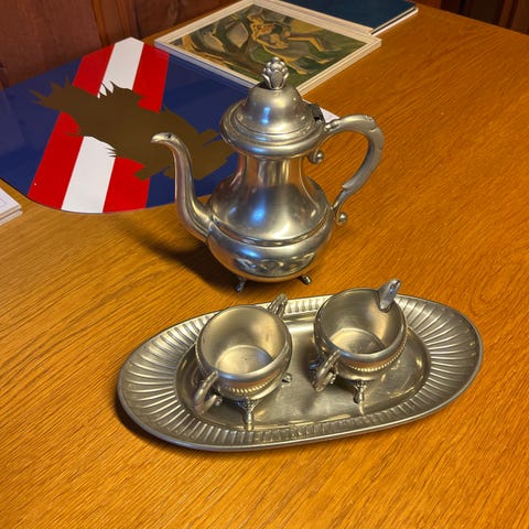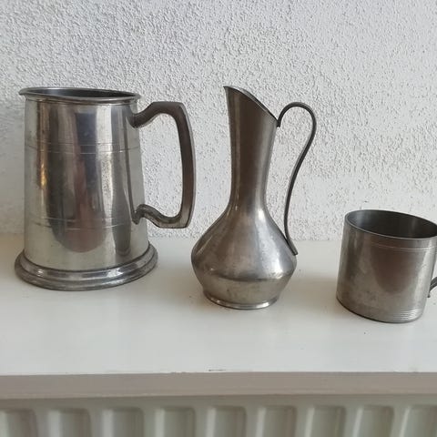 Vintage Pewter fra Norge. Samlet pris. Dåse og lysestage/vase.
