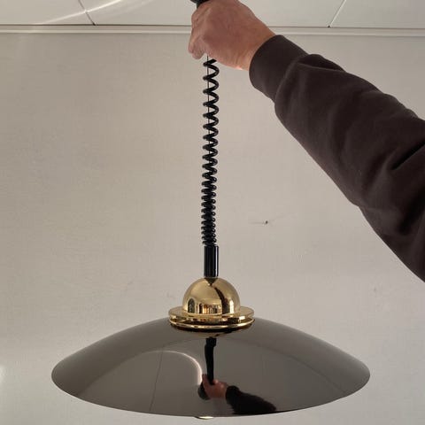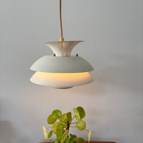 Meget vintage loftslampe med skærm i brunt metal og meget patina - se billeder. Men virker som den skal. Alm stor fatning (E27). Skærmdia: 16 cm. Kan hentes i Kbh./Rådhuspladsen eller i Odense eller sendes gerne. Se flere lamper: Søg HNI-Lamper på DBA