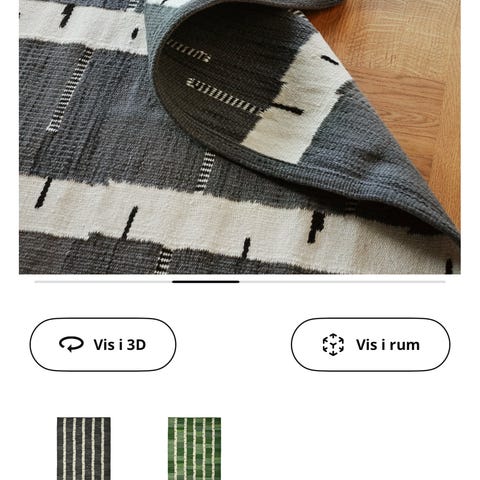 IKEA tæppe med sort-hvide striber, velegnet til brug i hjemmet. Tæppet har et enkelt og grafisk design med striber i sort og hvid.