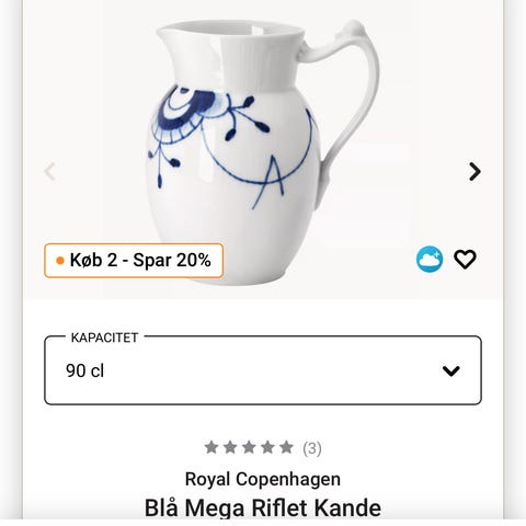 Selling this beautiful Royal Copenhagen Blue Mega Fluted jug, 70 cl.