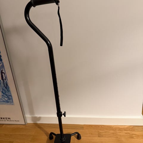 Den er udstyret med en kraftig gummidut i enden, så den afbløder ved berøring med jorden. Virkelig en lækker og stilling meget speciel stok.