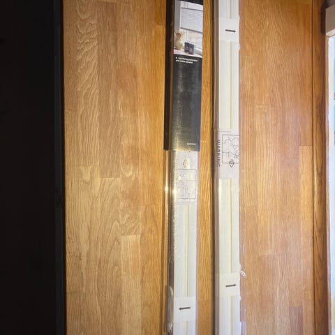 Har været oppe at hænge I 1 måned. De er helt som nye. Bredde 60 cm. Højde 175 cm. Hvide.