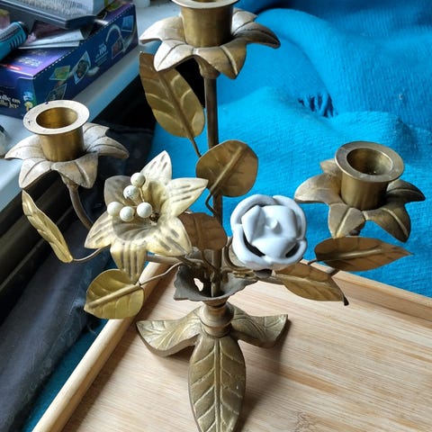 stativ med 12 arme til fyrfadslys. Fremstillet i kobber. Velegnet til indendørsbrug. Bunden er lidt rusten men fejler intet