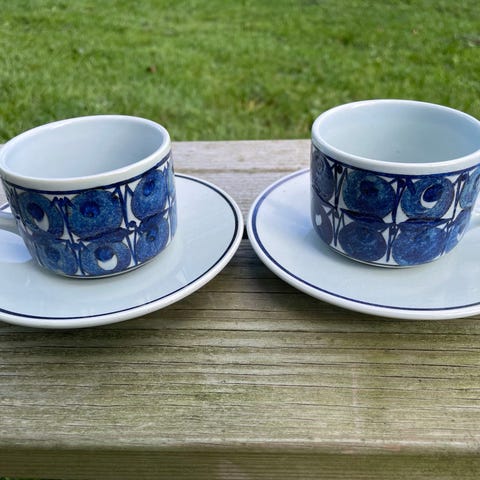 De er 100% fejlfrie både kop og underkop. 1. Sortering. Fremstår som nye. Samlet pris for 2 kopper og 2 underkopper. Sender gerne.