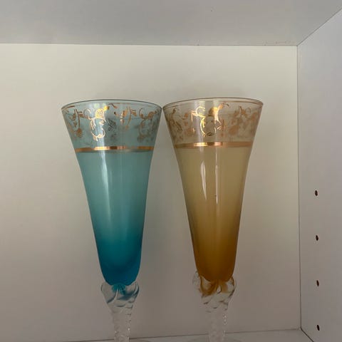 Glasset er mundblæst og håndskåret krystalglas, forgyldt med 24-karat guld.