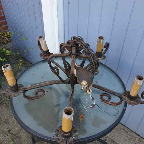 Søger efter en akademi-lysekrone med ravfarvede skærme