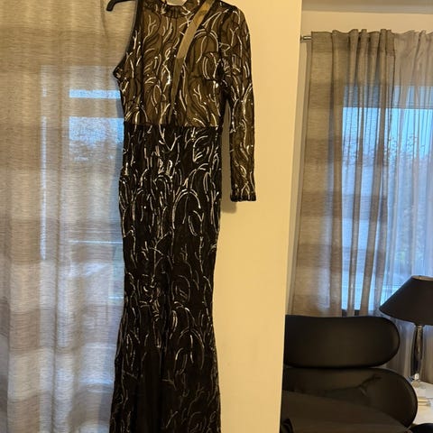 Mrk Cha Cha. Hvid med gråligt mønster. Går til midt knæ på 168 cm høj kvinde. Som ny