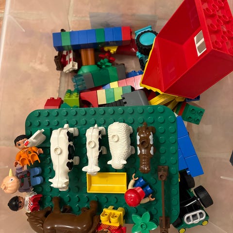 LEGO DUPLO City byggeklodser i forskellige farver og former, med forskellige figurer og dyr.