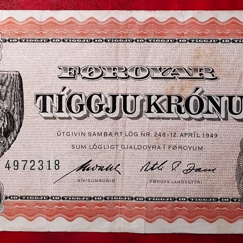 FÆRØERNE FØROYAR FAROE ISLANDS FIMM HUNDRAÐ 500 KR KRONE KRÓNUR / KRONER 2011 Strandkrabben & Hvannasund p32 PÆN! Pålydende 500.00DKK. Sendes med track/trace til 45kr.