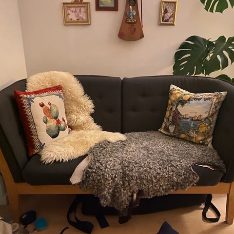 Sofa med blomsterprint og træben