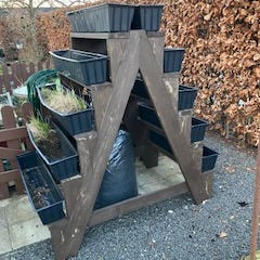 Det fritstående plantestativ er fremstillet af massivt cedertræ, hvilket gør det robust. Plantestativet er desuden let at samle.