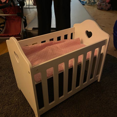Dukkeseng i massiv træ, som kan justeres i højde hvor dukken sover. Dyne og pude følger med.