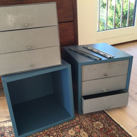 Bogkasse brugt som sengebord, derfor clips til oplader ledning.