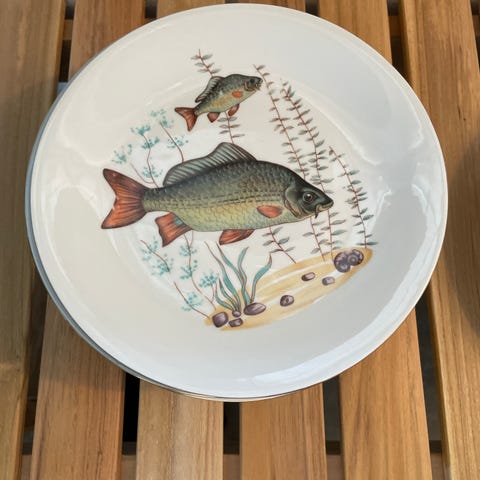 Flotte tallerkener med billeder af vildfugle i naturen.