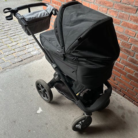 Kombivogn brugt til et barn. Der medfølger regnslag, paraply m.m med