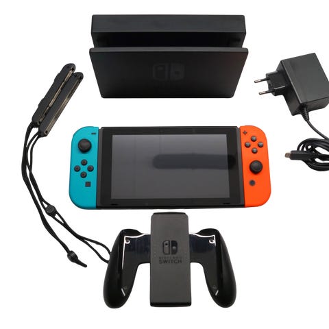 Nintendo Switch i god brugt stand. Inkluderer original emballage og alt standardtilbehør: Joy-Cons, dock, HDMI-kabel, Joy-Con grip, strømforsyning og remme. Perfekt til både håndholdt og TV-spil. Konsollen fungerer som den skal og er klar til brug.