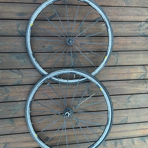 Mavic Ksyrium hjulsæt til cykel med letvægts aluminiumsfælge og eger. Velegnet til racercykler og tilbyder holdbarhed og ydeevne til cykelentusiaster.