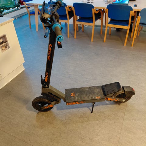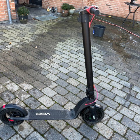 Gewa El-løbehjul i sort farve med elektrisk motor, skivebremse og reflekser på hjulene. Løbehjulet har et stel med sammenklappelig funktion og et håndtag med tilhørende elektronik. Velegnet til kortere transport og bykørsel.