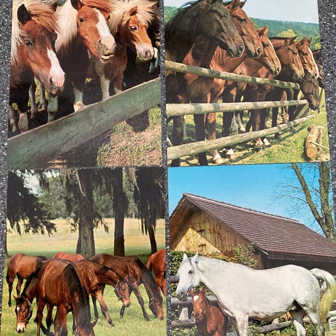3 postkort med heste