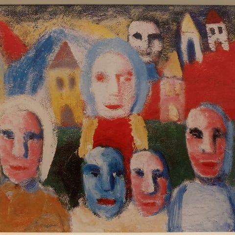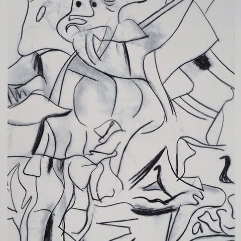 Dekorativt og stemningsfuldt kunsttryk med motiv efter Willem de Kooning, trykt i forbindelse med udstilling på Guild Hall, East Hampton.
