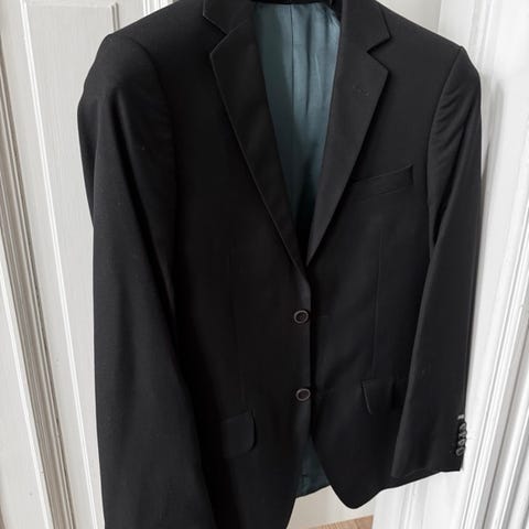 Jakkesæt, skjorte og slips (stadig med prismærke og aldrig blevet brugt) sælges samlet.