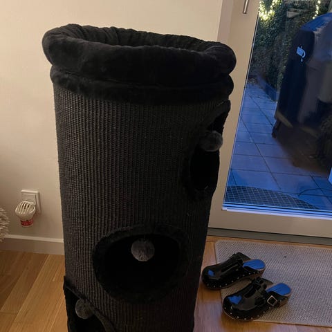 Denne charmende kradsetønde tilbyder din kat masser af måder, hvorpå de kan lege og hvæsse deres kløer. Den rummelige tønde er særligt egnet til store katteracer. Den giver nok plads til, at dine katte kan skjule sig, sidde, klatre og slappe af. Denne tønde inkluderer 3 store åbninger for nem adgang til etagen ovenover. Søgræsset giver dine katte mulighed for at hvæsse deres kløer, og det beskytter dine møbler mod at blive beskadiget. Det bløde, indvendige plys giver dine pelsede venner ultimativ komfort. Farve: BrunMateriale: Spånplade, plys, søgræs Mål: 36 x 60 cm (Diameter x H)Diameter, udvendig åbning: 13,5 cm Med 3 huse