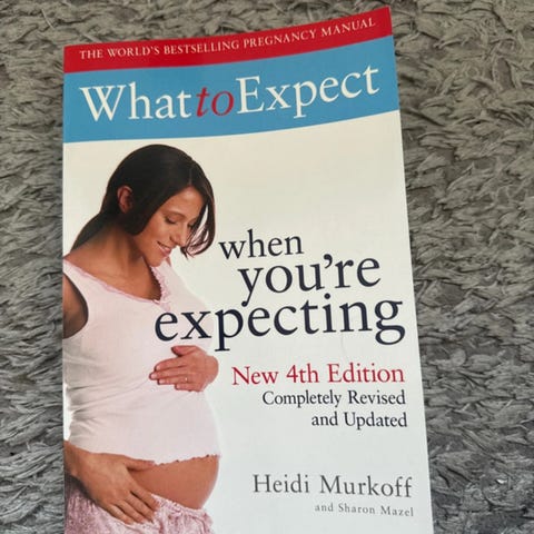 What to Expect What to Expect Before You're Expecting bog. Indeholder detaljeret indhold om graviditetens faser, forberedelse til graviditet, og pleje af baby. Teksten er på engelsk.