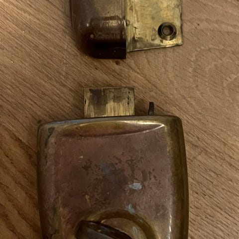 Ruko låsekasse uden nøgle/lås til indvendig dør, inderdørs, inden dørs, højde 120 mm, dybde 75 mm, bredde 25 mm, fra 60'erne eller 70'erne, sælges.