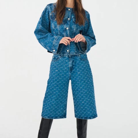 Designed with a modern, minimalist collarless neckline, this piece offers a fresh twist on the classic denim jacket.