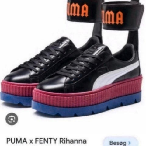 Helt nye PUMA Fenty Creepers by Rihanna i støvet grøn og gul nubuck. Flade snørebånd i både grønne og råhvide og med en tyk og solid gummisål. I original æske med tilhørende velourstøvpose/rejsepose.