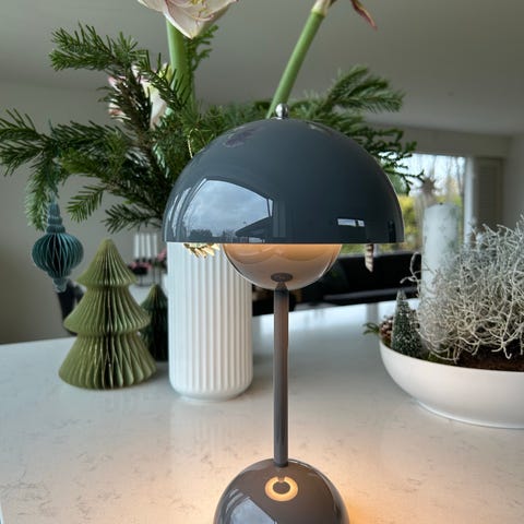 &Tradition Flowerpot VP9 bordlampe designet af Verner Panton. Lampen er i farven swim blue og fremstillet i PRC. Den er udstyret med en udskiftelig 3W LED lyskilde. Lampen er bærbar og har et karakteristisk design fra 1968.