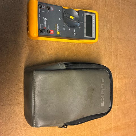 Fluke 335 CAT III 600V tangamultimeter med målefunktioner til strøm, spænding og modstand. Enheden leveres med ledninger og en beskyttende sort taske. Designet til elektriske målinger i forskellige applikationer.