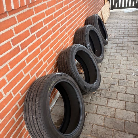 Helt nye Michelin e primacy dæk, de har kørt 741 km, og er blevet erstattet af helårsdæk.