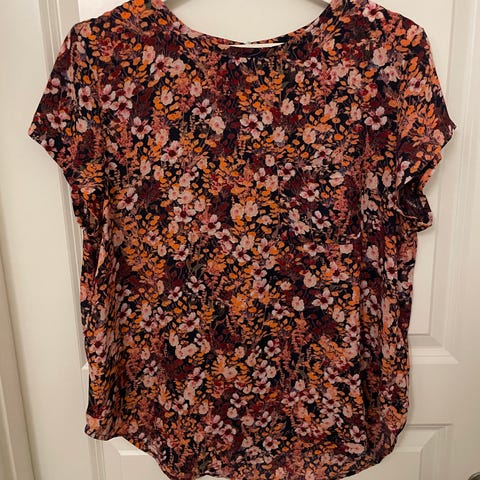 Bluse, H&M, str. 36, Flerfarvet, Viscose, Næsten som ny, Kortærmet bluse i blå og brændte farver.