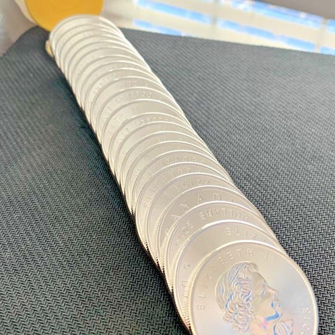 Her er i alt 11 dollar svarende til over 3700 kroner i sølv, så du får disse flotte samler mønter til under spotprisen.