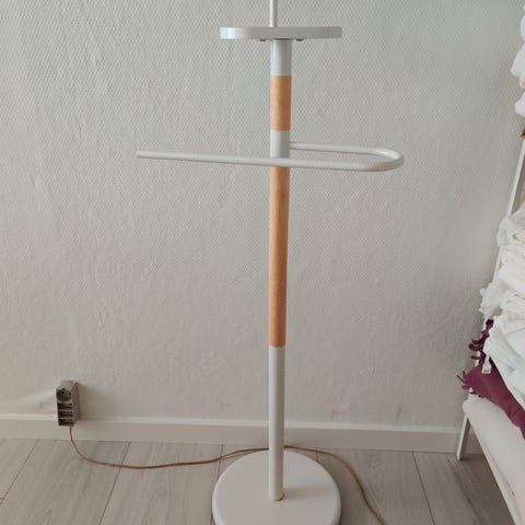 Søgeord: Garderobestang, garderobe, børstet stål, stålbøjle, entre garderobe.