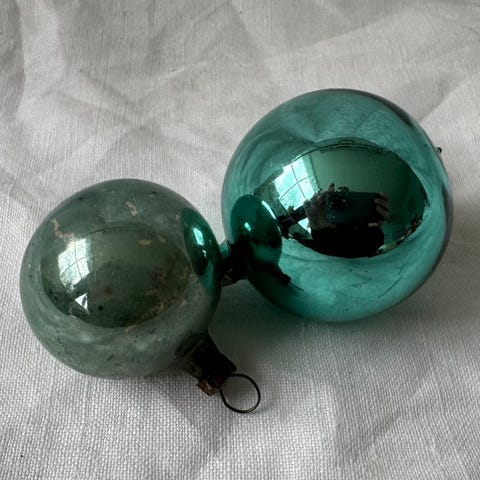 Smukkeste gamle glas julekugler i den lækreste varme røde julefarve. Med ophæng til at hænge på juletræet. Mundblæste og håndmalede.